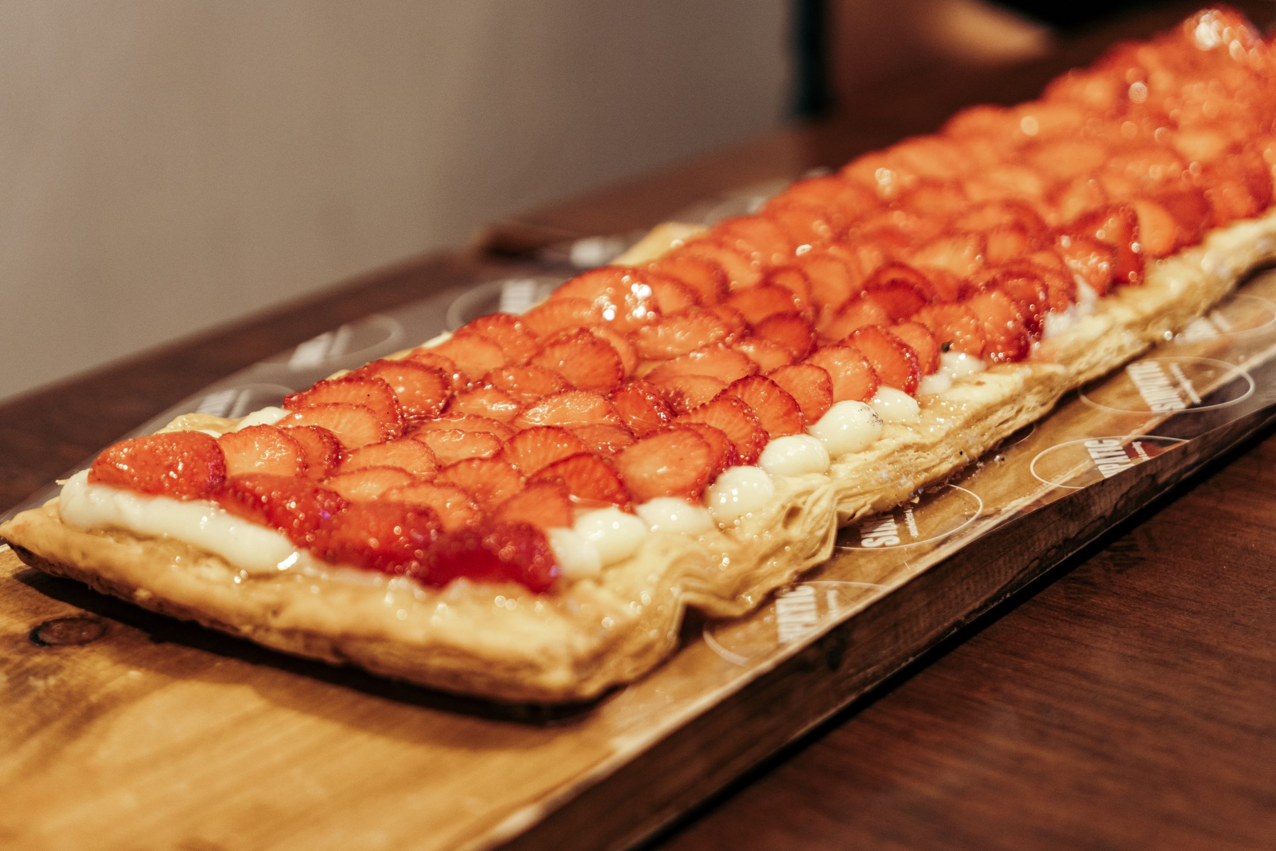Full daurat, lleuger i 100% mantega, amb una deliciosa capa de crema pastissera i coberta amb làmines de maduixes fresques. Una combinació fresca i deliciosa que conquista per la seva textura i sabor natural.
